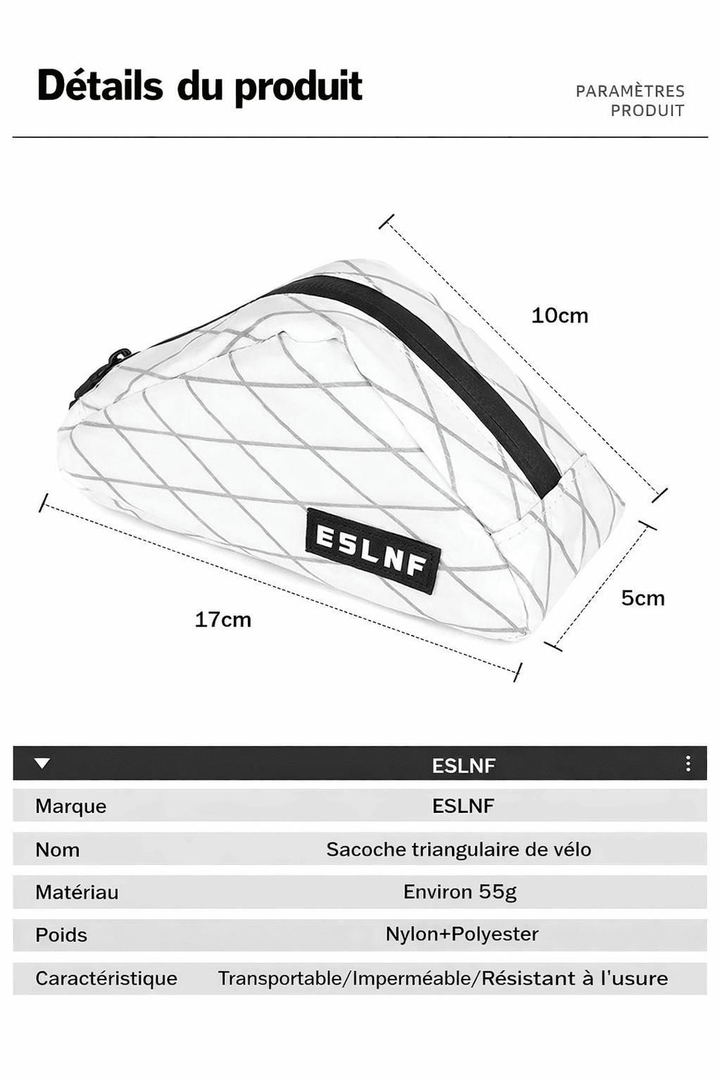 Sacoche à selle : Sa forme triangulaire optimise l’espace et permet un accès facile au contenu. Sa conception robuste assure une bonne résistance à l’usure, même lors d’une utilisation régulière.
