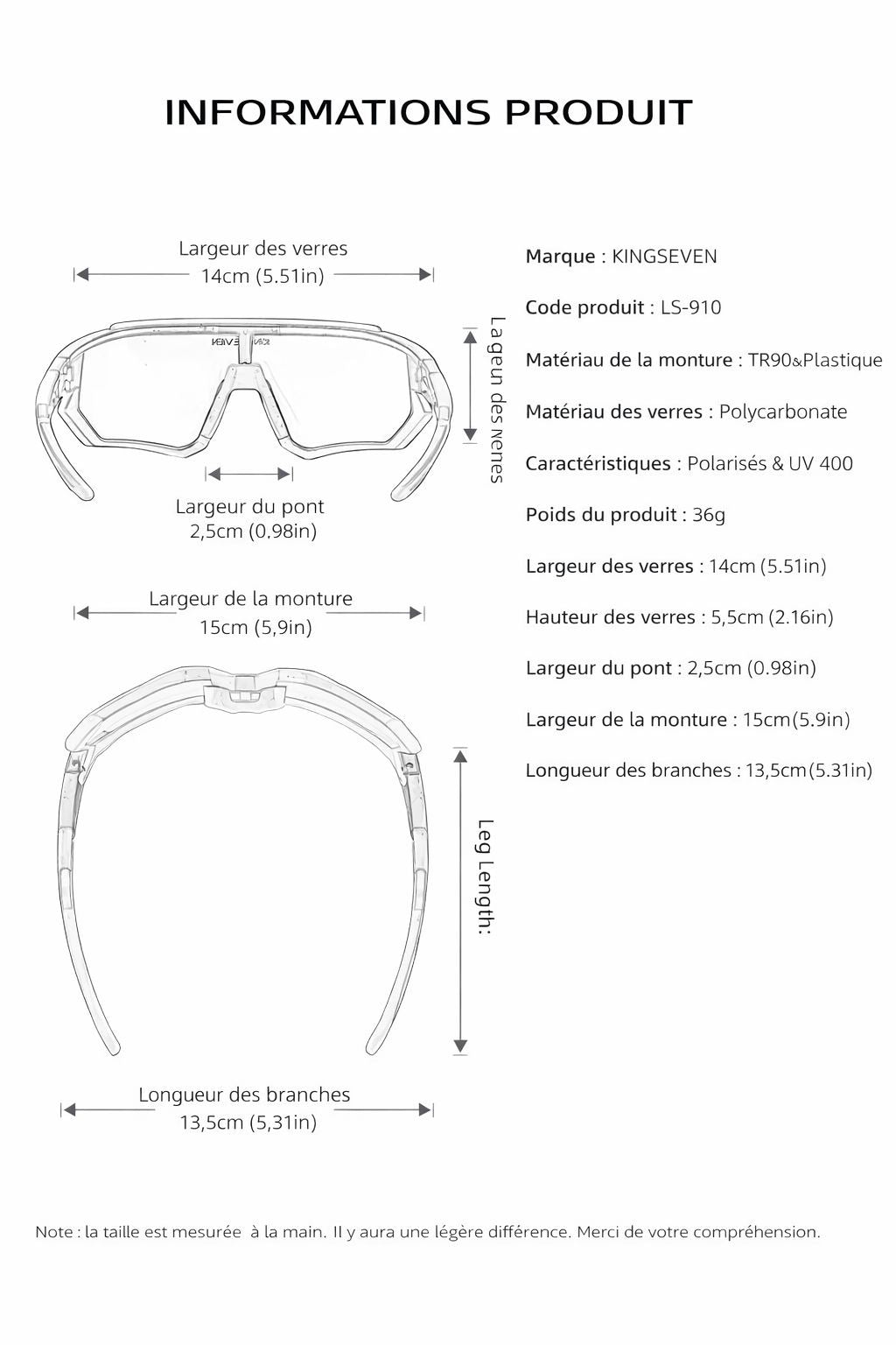 Les verres en polycarbonate haute qualité bloquent 100 % des rayons UVA et UVB. La technologie polarisée réduit efficacement les reflets (route, eau, soleil) et améliore la netteté, offrant une vision plus claire et moins fatigante pour les yeux.
